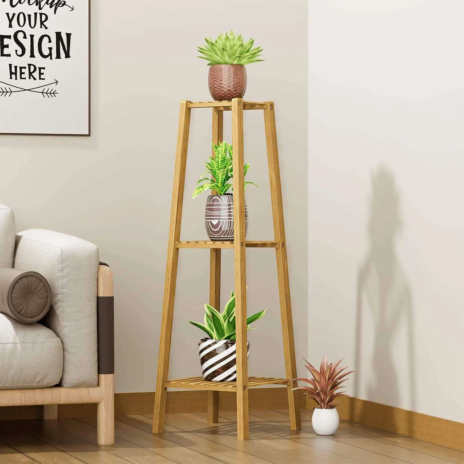3 Tier Bamboo Corner Plant Stand Ladder Design Wholesale