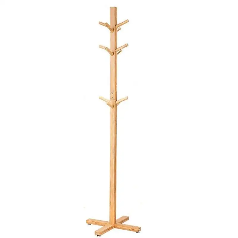 Bamboo Freestanding Coat Rack with 8 Hooks stable space saving eco friendly design ideal for entryways homes and offices