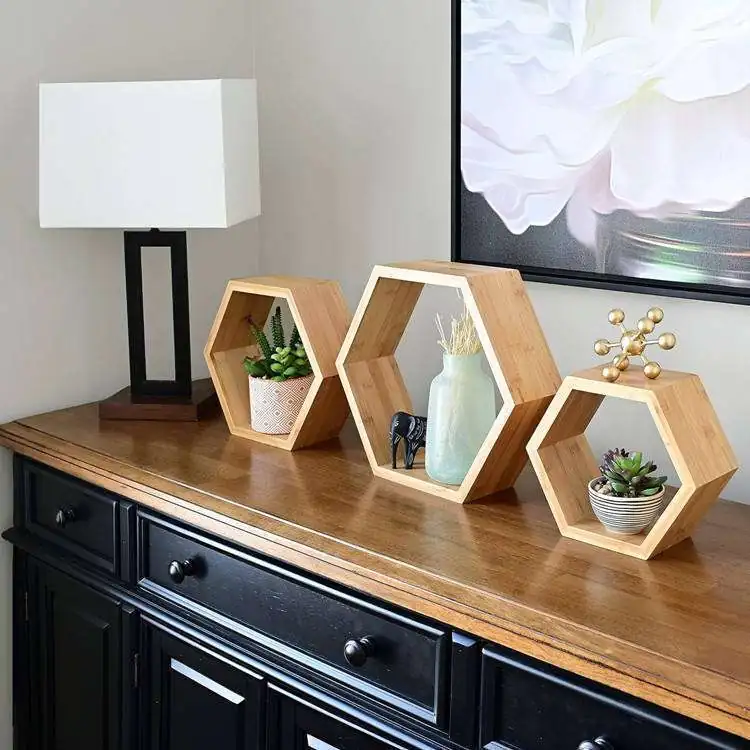 Versatile Wall Decor with Natural Bamboo Hexagon Floating Shelves
